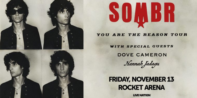 Sombr’s You Are The Reason Tour is coming to Rocket Arena on November 13 with special guests Dove Cameron and Hannah Jadagu! 🖤 Tickets on sale after Friday, 4/17 @ 10AM local here: https://www.rocketarena.com/events/detail/sombr-261113