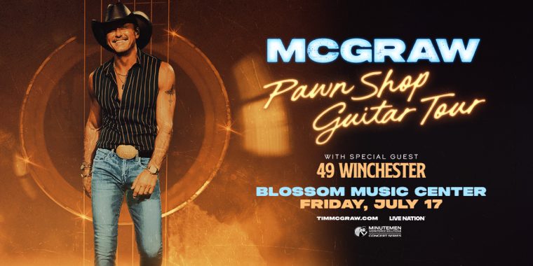 Tim McGraw is coming to Blossom Music Center on Friday, July 17 for the Pawn Shop Guitar Tour 2026 with special guest 49 Winchester!