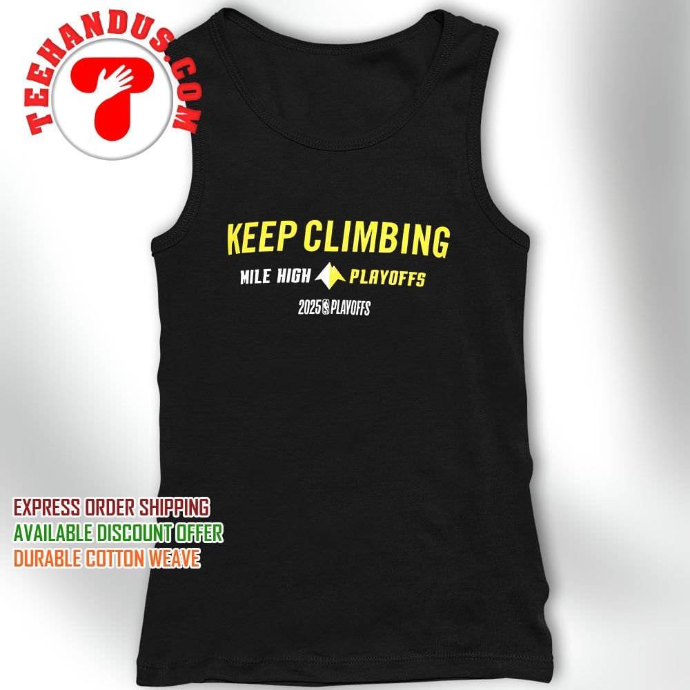 The Denver Nuggets Keep Climbing Mile High 2025 Mantra Playoffs NBA Shirt represents more than just a piece of fan apparel; it encapsulates a vision of perseverance, unity, and high-altitude resilience that defines the team’s journey toward NBA greatness. Whether used to energize players, motivate supporters, or inspire personal growth, this mantra and shirt seamlessly blend the team’s culture with Denver’s unique environment. As the Nuggets continue to ascend toward their aspirations, this symbol serves as a constant reminder that elevation—both physical and mental—is a relentless pursuit, and with collective effort, the pinnacle is within grasp.