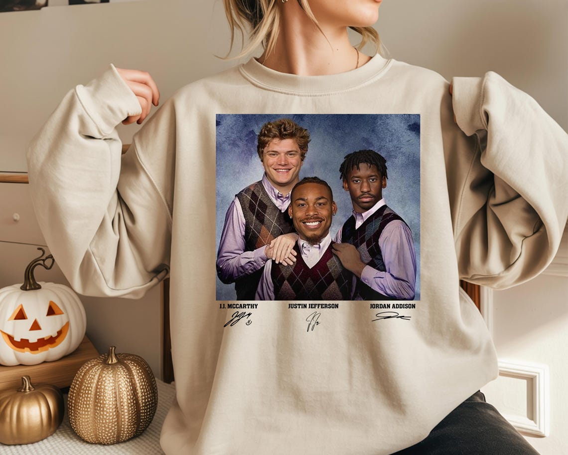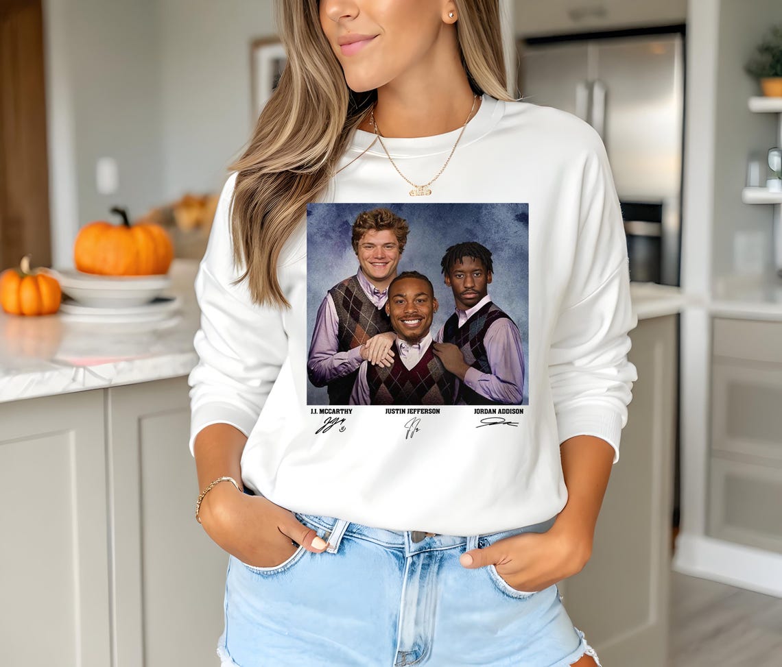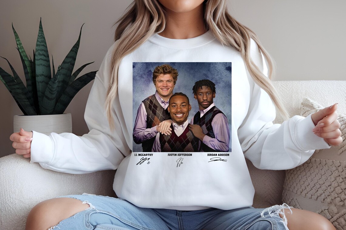 The first step to appreciating this unique shirt is to understand the cultural synergy between athletic greatness and contemporary fashion. The J.J. McCarthy Justin Jefferson Jordan Addison Minnesota Step Bros Shirt is more than a simple clothing item; it’s a statement piece that captures the spirit of Minnesota’s dynamic athletes and streetwear culture.