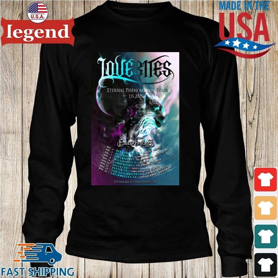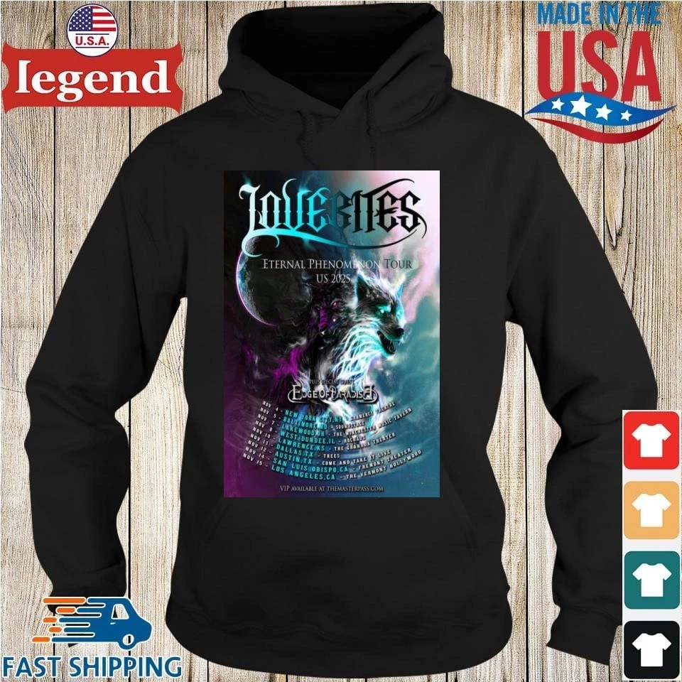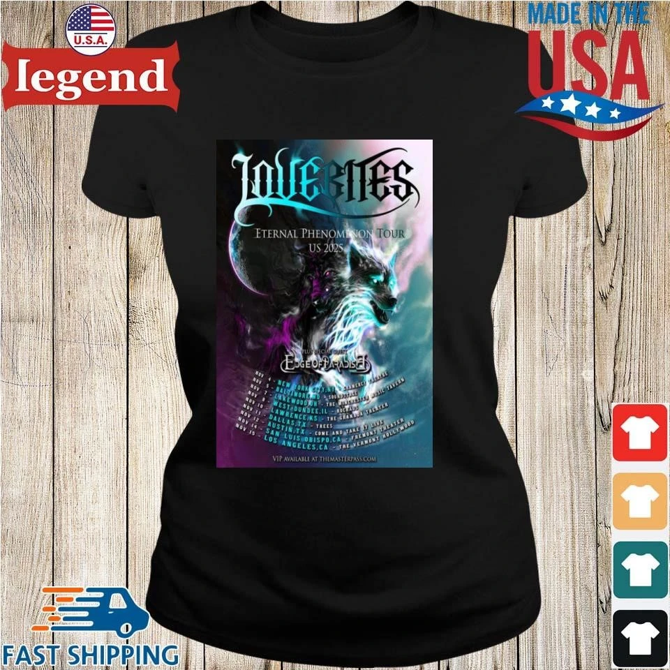 The quality of merchandise is very important, especially for clothes that will be worn often. The Lovebites Eternal Phenomenon Tour US 2025 Dates Shirt is usually made with high-quality fabric that holds up to washing and wear, guaranteeing a long life.