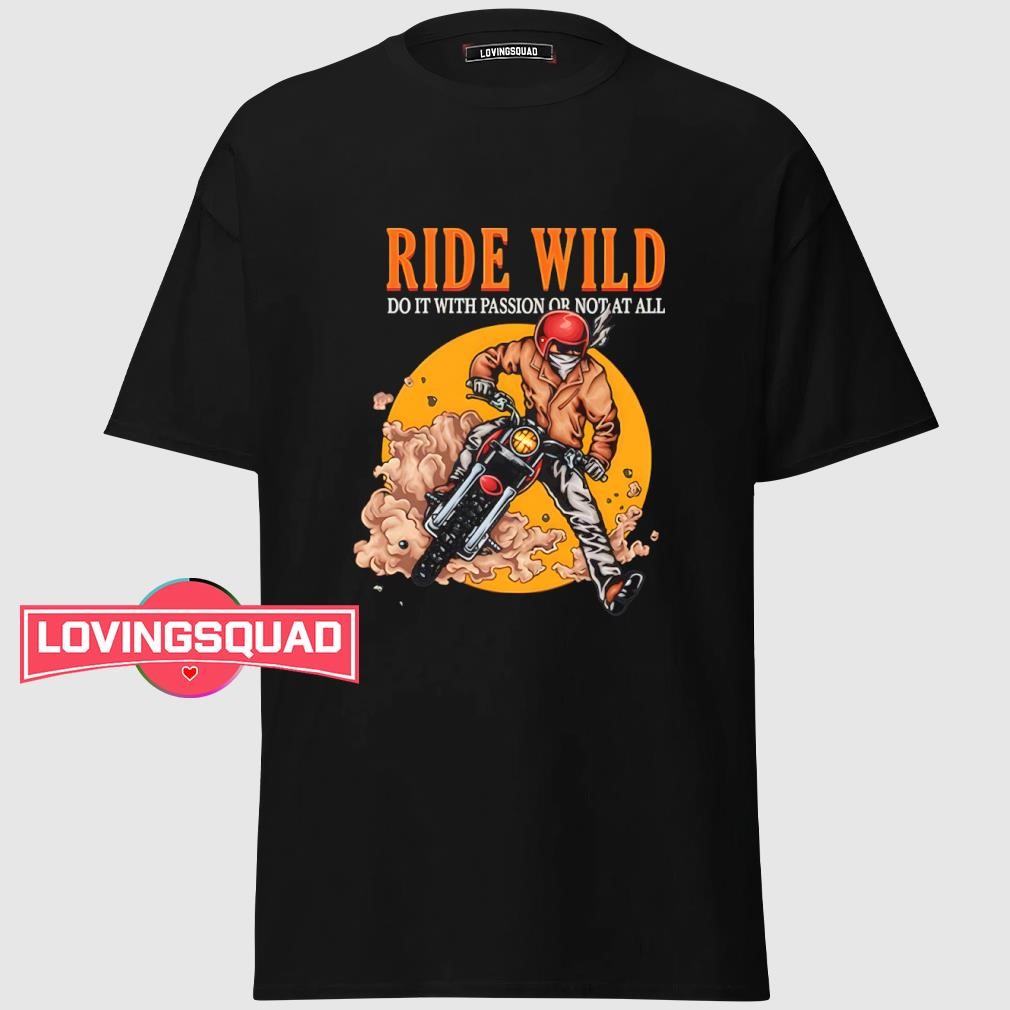 The message of the Ride Wild Do It With Passion Or Not At All Shirt is tailored to connect with individuals who recognize that passion fuels achievement. Adding this to your wardrobe reinforces your identity, branding you as someone who is daring, committed, and enthusiastic—and someone who embraces standing out from the crowd.