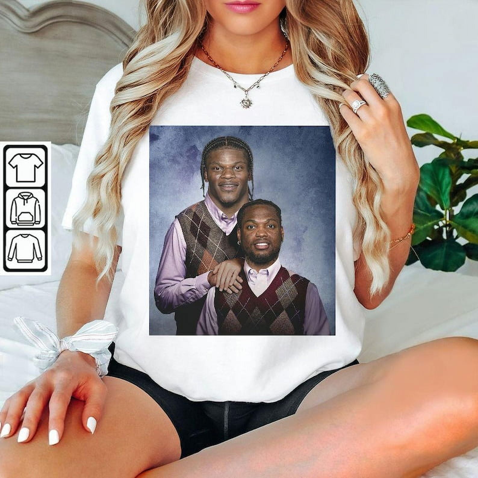 Integrating vintage NFL pieces like the Vintage Lamar Jackson Derrick Henry Baltimore Step Bros Shirt into your daily fashion requires a thoughtful approach. Consider balancing the vintage vibe with modern accessories for a more contemporary look. A leather belt, minimalist sneakers, or a sleek jacket can elevate the shirt’s aesthetic.